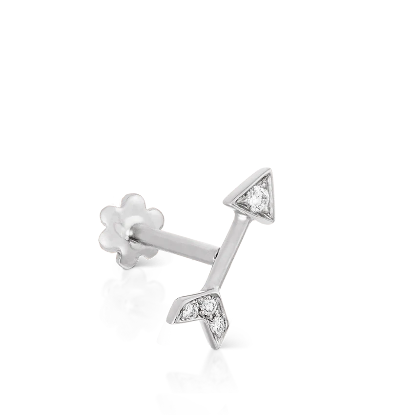 A delicate solid gold arrow with diamonds set into the point and tail. The smaller of our two arrows.