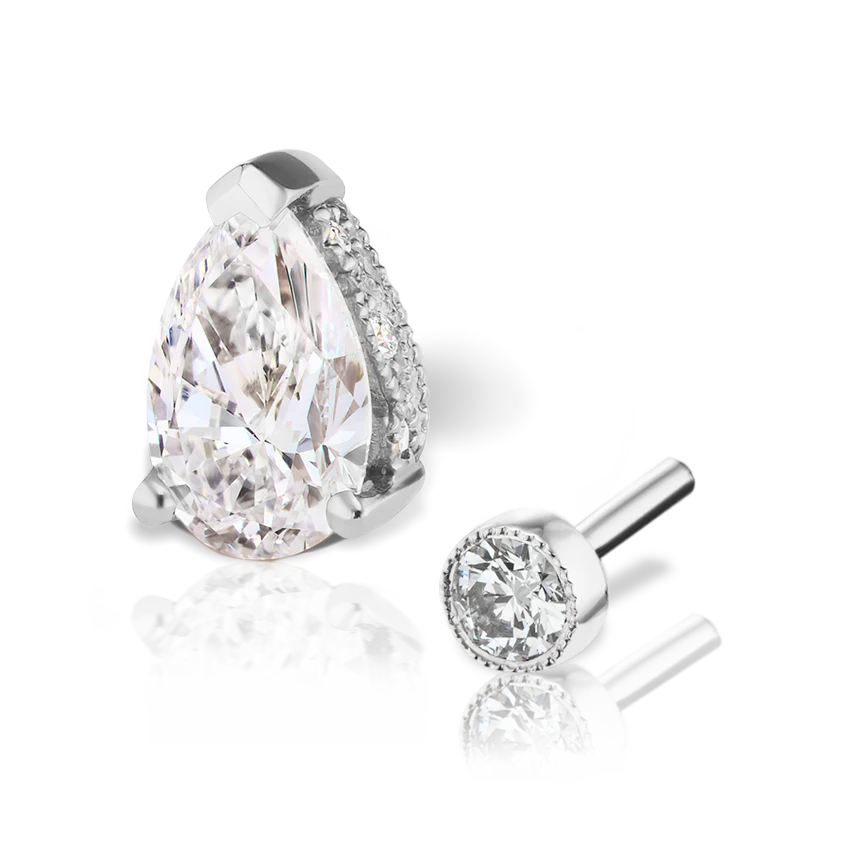 -70%Pear Diamond Threaded Stud Earring, Diamond Back—